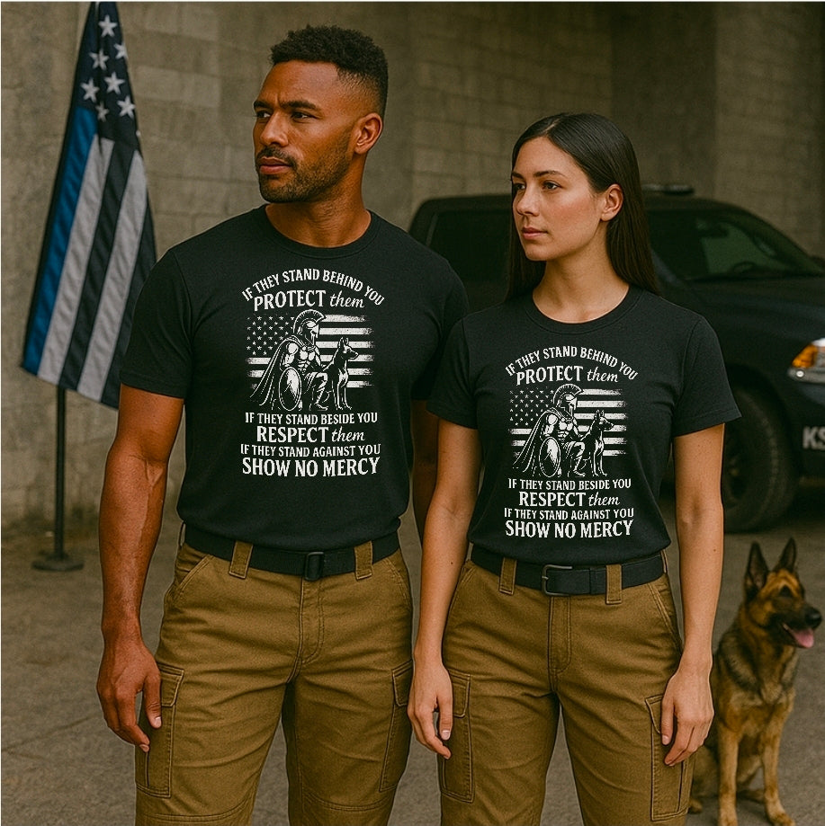 This powerful black-on-transparent design embodies strength, loyalty, and brotherhood within the law enforcement community. At the center stands a Spartan warrior, kneeling beside his faithful K9 partner, symbolizing courage and unbreakable unity.